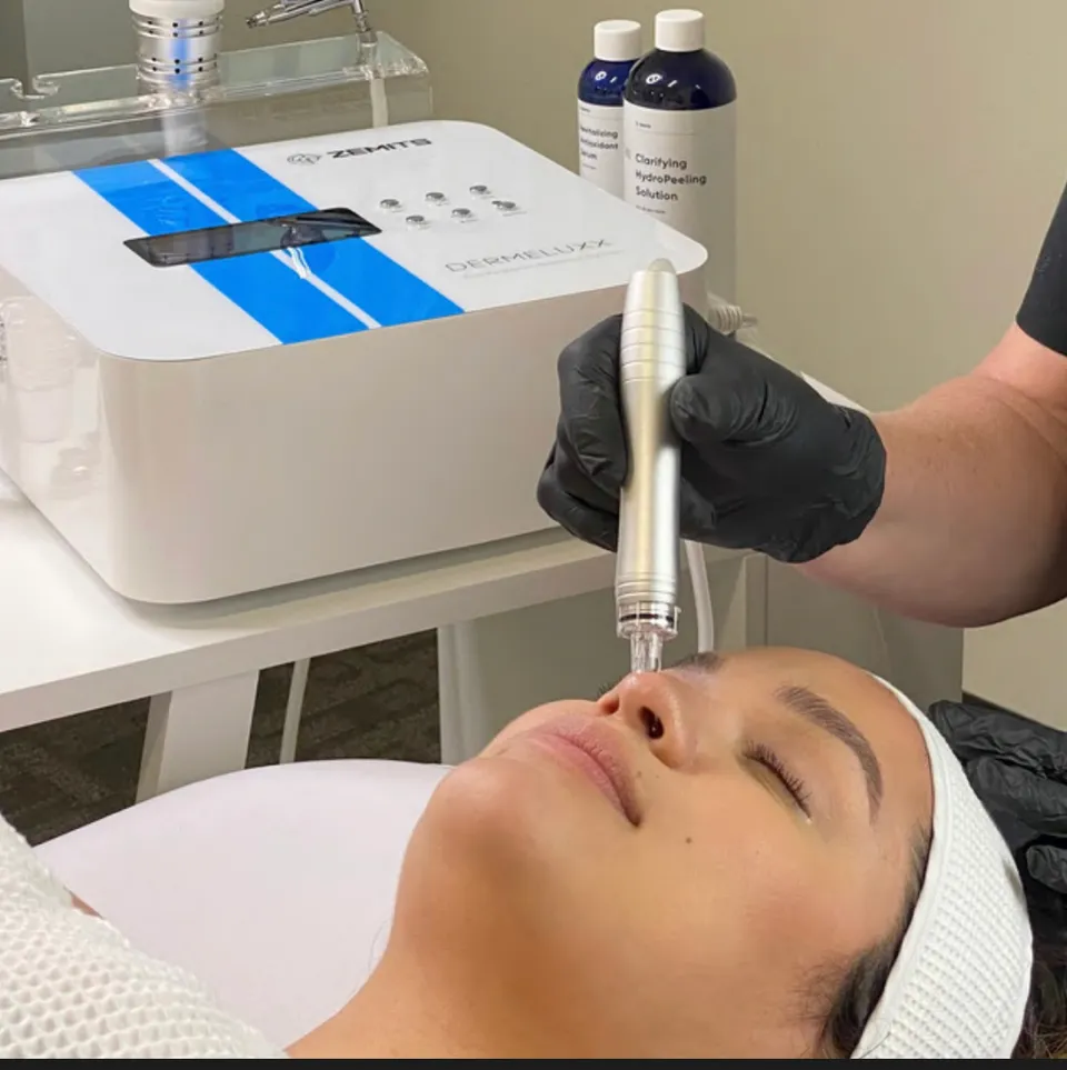 The HydroLuxx Facial is a unique non-invasive treatment that combines deep skin cleansing, gentle exfoliation and oxygen rejuvenation. The HydroLuxx Oxygen Facial is a very comfortable and relaxing treatment that uses a unique hydro wand to deliver treatment serum and exfoliate dead skin cells simultaneously. It also has special tips to extract the blackheads in the T-zone. The final step of a HydroLuxx Facial is Oxygen Infusion. It feels almost like a light breeze, which delivers a very soothing and refreshing treatment. At the end of facial your skin becomes brighter and acquires a healthy glow.